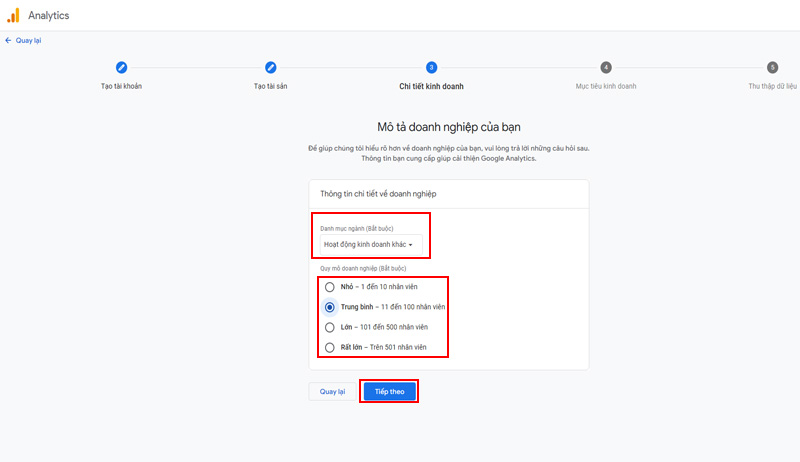 Chọn Danh mục ngành và Quy mô doanh nghiệp của bạn.